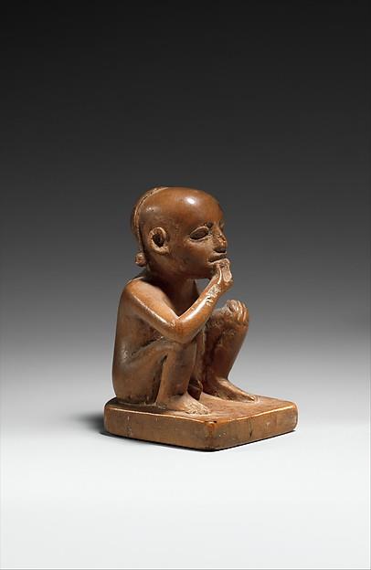 The seemingly benign appearance that this figurine presents is deceptive. To the ancient Egyptians, the hippopotamus was one of the most dangerous animals in their world. The huge creatures were a hazard for small fishing boats and other rivercraft. The beast might also be encountered on the waterways in the journey to the afterlife. As such, the hippopotamus was a force of nature that needed to be propitiated and controlled, both in this life and the next. This example was one of a pair found in a shaft associated with the tomb chapel of the steward Senbi II at Meir, an Upper Egyptian site about thirty miles south of modern Asyut. Three of its legs have been restored because they were probably purposely broken to prevent the creature from harming the deceased. The hippo was part of Senbi's burial equipment, which included a canopic box (also in the Metropolitan Museum), a coffin, and numerous models of boats and food production.