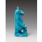 In the past, the piece was identified as true glass. While it is difficult to identify the material precisely, pooling of glaze around the feet and the slightly grainy structure visible in a few places strongly argue for glassy faience. Possibly the overall form was created in a mold, but details of the head and extremities, which convey the deity's power and intimidating nature, must have been modeled by hand. The pale blue color of the glaze assists in assigning a Ptolemaic Period date. |