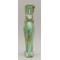 在古埃及,神通常被描绘成一个人体和一个动物的头。不太常见的情况是,人的头附着在动物的身体上,在这种情况下是眼镜蛇。这条蛇在一个低底座上饲养;它的重量放在身体的第一个底部和尾巴的尖端,尾巴的尖端稍微突出到底座的后面。它的身体只弯曲了两次,所以眼镜蛇会高高地向后仰。在这条蛇宽大的风帽中央有一列垂直的腹板。风帽的上部有一个纵横交错的图案,三个对角的腹面鳞片构成了立柱的下部。从帽子里冒出来的是一个人头,戴着一顶用缎带绑着的三边长假发。耳朵在与脸相接的地方很窄,然后变宽,这是牛耳朵的典型特征。头顶上的sistrum(一种邪教乐器)的音箱呈一个小神龛的形状,由向内弯曲的蜗壳框起来。后脑勺后面是一个用来悬挂的穿孔环。关于这里所代表的神的身份,请参阅下面的策展解释。