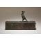 The falcon stands on a rectangular receptacle that would have held an animal mummy. The back end is open where the mummy, now lost, would have been inserted. Such falcon mummy boxes, or sarcophagi, would have been offered for deposition in animal necropoleis, not just in relation to the cult of Horus, but also more broadly in association with solar cult.