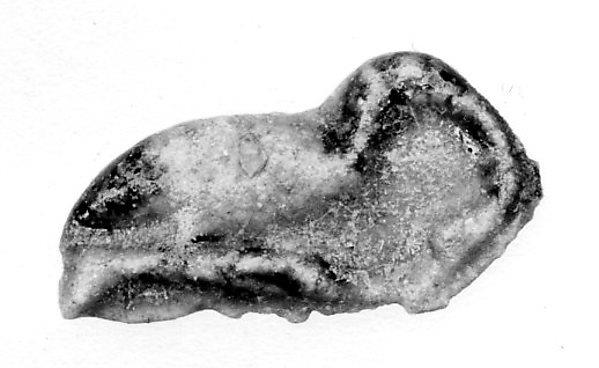 Starting in the later Late Period and continuing through the Ptolemaic Period, a type of glass amulet cast by pressing the glass into a shallow open mold appears. The back was left rough, and the amulets may look ragged because glass overflowed the mold around the edges. The earlier amulets are monochrome, bi- or multicolor amulets supplement the repertoire during the Ptolemaic Period.