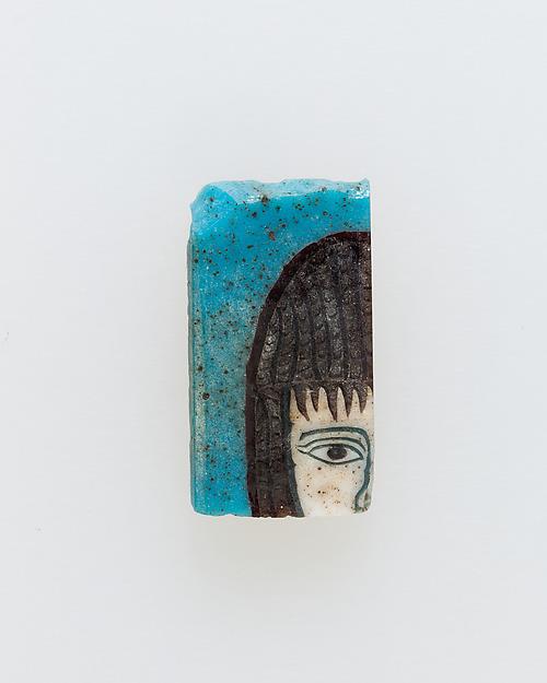 A mosaic glass technique allowed multiples of an image to be created: a figural or design composition was made by bundling colored glass canes, which were then drawn out into a long bar. The bar was then sectioned at right angles, probably by striking the bar with appropriate tools, to produce small inlay tiles. The tile would then be smoothed and polished on the face intended to appear outwards.