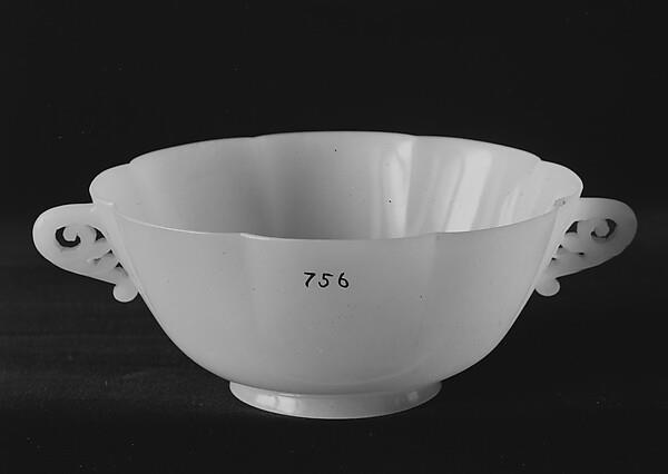 直径 of rim 5 1/8 英寸 (13 厘米); 宽 at handles 6 1/4 英寸 (15.9 厘米); 直径 of foot 2 1/4 英寸 (5.7 厘米)