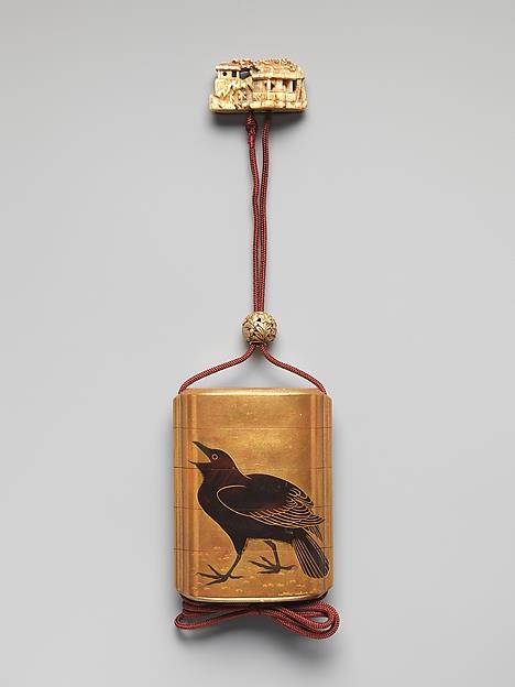 Inrō with Herons among Reeds (obverse); Crow (reverse)