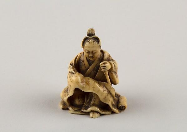 Netsuke of Woman Reading from a Scroll