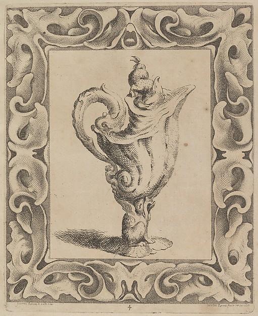 雅各布·卢特玛(Jacob Lutma)决定使用印刷媒介来保存他父亲的耳式银器设计。由此产生的印刷系列包含一些最具标志性的耳廓风格印刷品,并涵盖了各种各样的物品和装饰品。这幅版画巧妙地将两种不同的图案——框架和水壶——结合在一个有吸引力的图像中,正如标题所宣布的那样,它对各个学科的艺术家都很有用,也是"所有热爱艺术的人"的有吸引力的收藏品。