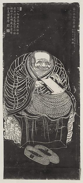 Of the many luohan painters throughout Chinese history, none was more influential than the Buddhist monk Guanxiu (832–912), whose wild caricatures inspired generations of artists to depict luohans as exotic, superhuman beings. Guanxiu’s paintings were already considered rare in 1757, when the Qianlong emperor encountered what he believed to be an authentic set in a monastery in Hangzhou. To preserve their appearance, the emperor commissioned copies and had them carved in stone so that rubbings like these could be made. The original paintings are now lost, making these copies some of the most important surviving evidence of Guanxiu’s style.