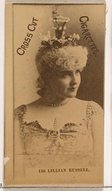 Card Number 136, Lillian Russell, from the Actors and Actresses series (N145-2) issued by Duke Sons & Co. to promote Cross Cut Cigarettes
