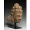 Sandstone architectural elements of this type are a regular feature of Hindu temples constructed by the Cham kingdoms of central and southern Vietnam. The temples are typically single-cell sanctuaries with a tapering tower above. They are built of fired brick with sandstone doorjambs, tympanums, and in a characteristically Cham innovation, antefixes such as this one projecting from the tower.