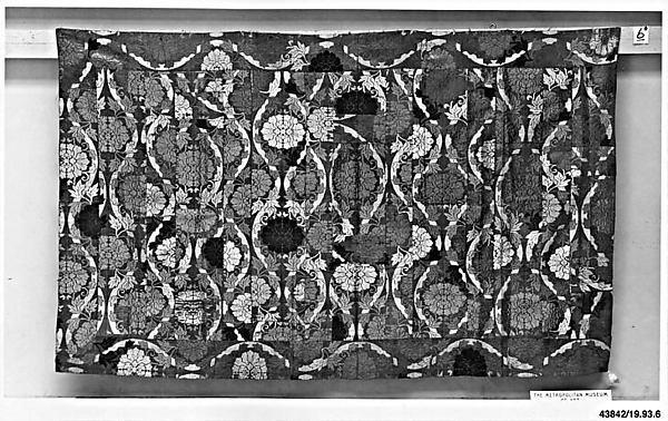 The bestowal of the Buddhist master’s vestment (kesa) upon the disciple represents the transmission of the dharma (teaching). This is especially true in Zen Buddhism, as only the master can recognize that the disciple is on the way to—or has reached—enlightenment. Kesa thus indicate the rank of the owner within the religious hierarchy, and are treasured vestments associated with those who wore them. As a reminder of the Buddha’s simple, patched garment, small rectangular pieces of fabric are sewn together to form one kesa, worn diagonally over the left shoulder. This vestment has been created from cut-up pieces of a Noh costume (karaori), which was perhaps a religious offering.