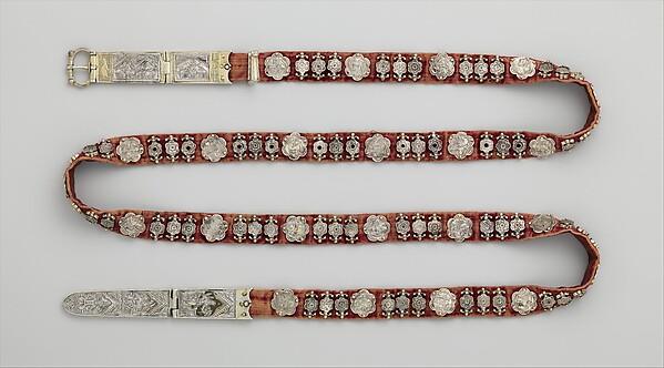 The celebrated Italian poet Giovanni Boccaccio (1313–1375) tells of a silver belt stolen from a virtuous Genoese woman that was offered for sale in the market at Acre, a principal arrival point for European Christian pilgrims. The story bears witness to the lucrative and lively commerce between Italian merchant cities and the Holy Land. This belt, which combines typically European motifs like that of a woman spinning with images of men in Persian inspired costumes, boasts of the same wide world that Boccaccio took for granted.