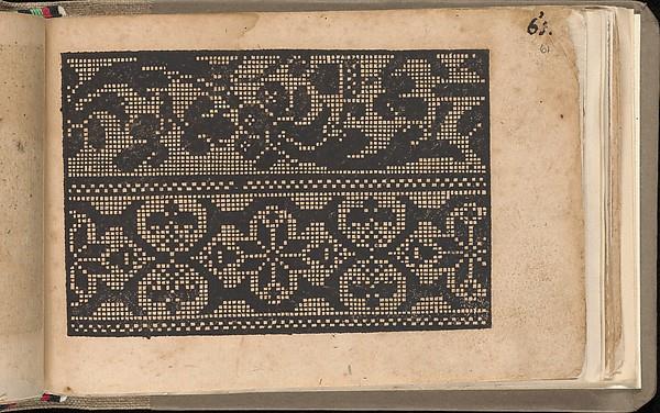 Illustrated and hand-colored title page, 94 pages of designs for lace and embroidery.