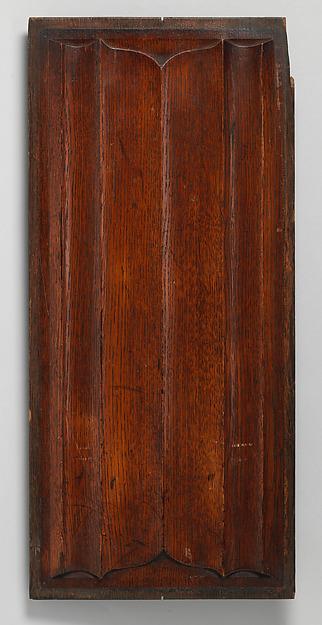 这些橡木装饰板体现了A.W.N Pugin的设计,他是英国哥特式复兴风格的主要倡导者。普金的作品是19世纪中期开始的英国设计变革的核心。他钦佩中世纪艺术的诚实和纯洁,并对历史主题的无意义重复表示遗憾。普金创造了"Brumagen Gothic"一词,指的是"伯明翰那些取之不尽、用之不竭的低级趣味矿井",包括黄铜制品(烤架、大门、烛台和其他灯具、五金件和画廊栏杆)、彩色玻璃、瓷砖和家具。这些嵌板是在普金对哥特式复兴的诠释中制作的,并以几种不同的图案为特色,灵感来自中世纪的窗格和亚麻折叠图案。