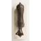 This door knocker is in the form of a small dog or puppy, crouching on the tang and striker, tail curled up over its rump, ears cocked and mouth open.