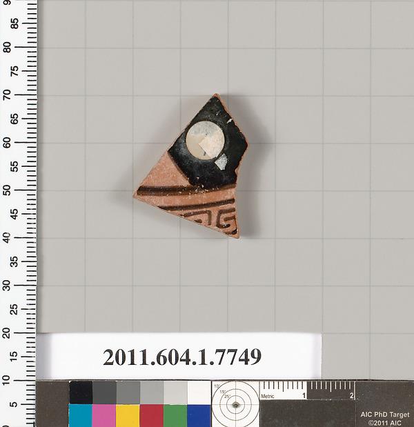 Interior, unidentified object; Exterior, calves of a draped figure with shod feet, in front of a block seat?; seated figure?