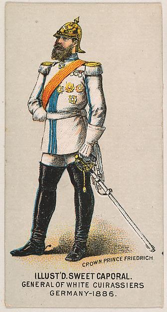 1886年,德国White Cuirassers将军,摘自Kinney烟草公司为推广甜Caporal香烟而发行的军事系列(N224)