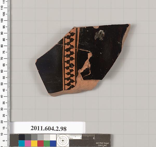 Start of handle root; part of the panel ornament of a pelike, which consists of a chain of linked pomegranates