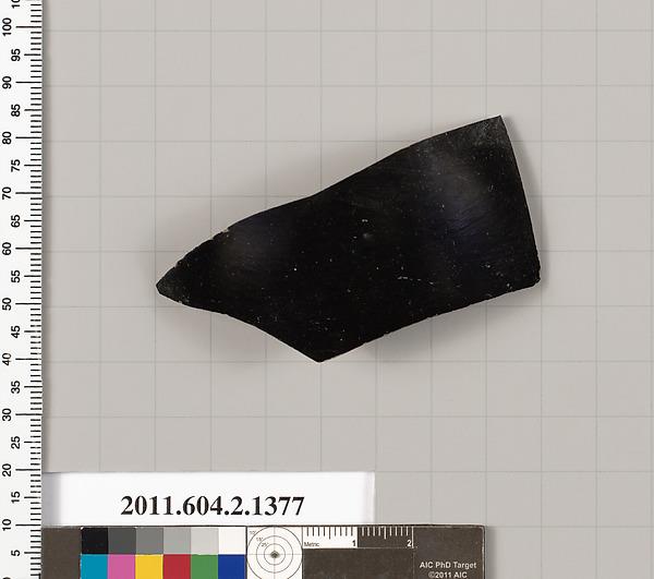Black glaze fragment from a skyphos of Corinthian type