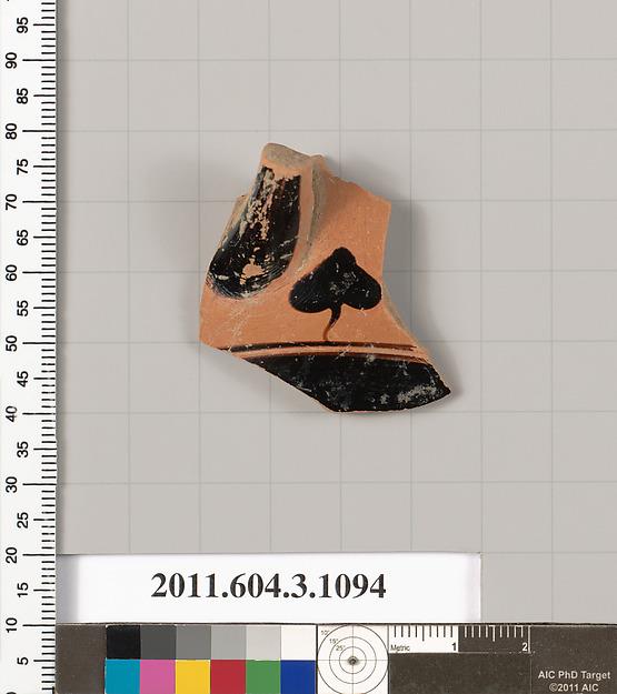 Black glazed band; below, ivy leaf with a stem; part of a handle