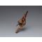 Raven rattles, carried in dances by men of high rank, traditionally feature a raven, a secondary raven’s face, and a human figure reclining on the raven’s back. Here, the human figure has a bear’s or wolf’s head and, on the underside, a tiny frog sits at the bottom of the face on the raven’s breast. This inventive design is attributed to Albert Edward Edenshaw, uncle of the renowned Haida artist Charles Edenshaw.