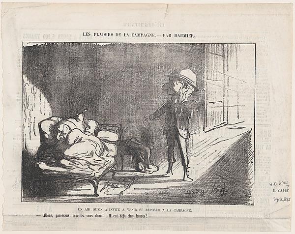 A friend who was invited to relax for a few days in the countryside, from 'The joys of country life,' published in Le Charivari, September 12, 1865