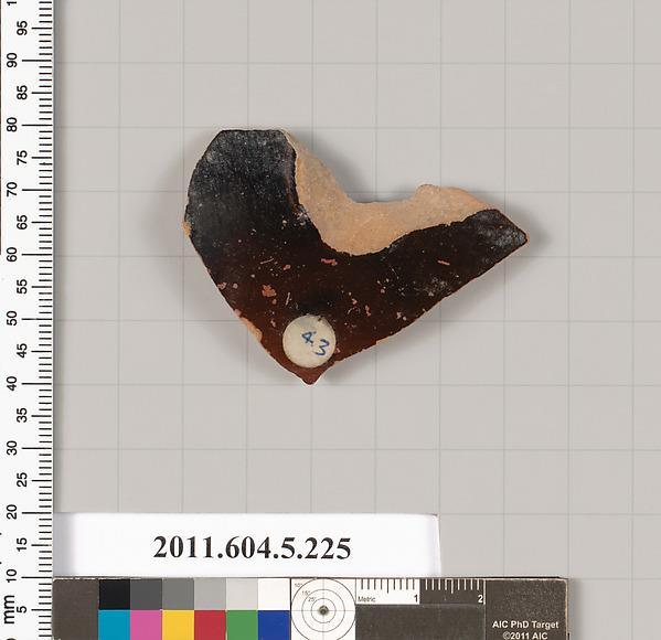 Exterior, black glazed fragment with the start of the handle root