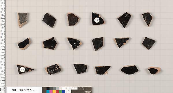 Eighteen black glazed fragments from kylikes