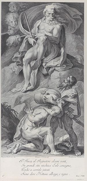 Plate 8: Ulysses receiving the winds in a leather bag from Aeolus
