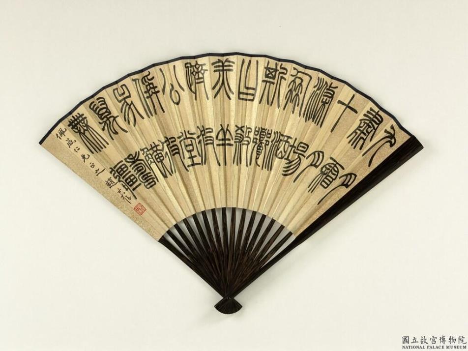 民国孔小瑜清供赵叔孺篆书毛诗句 成扇 孔小瑜清供