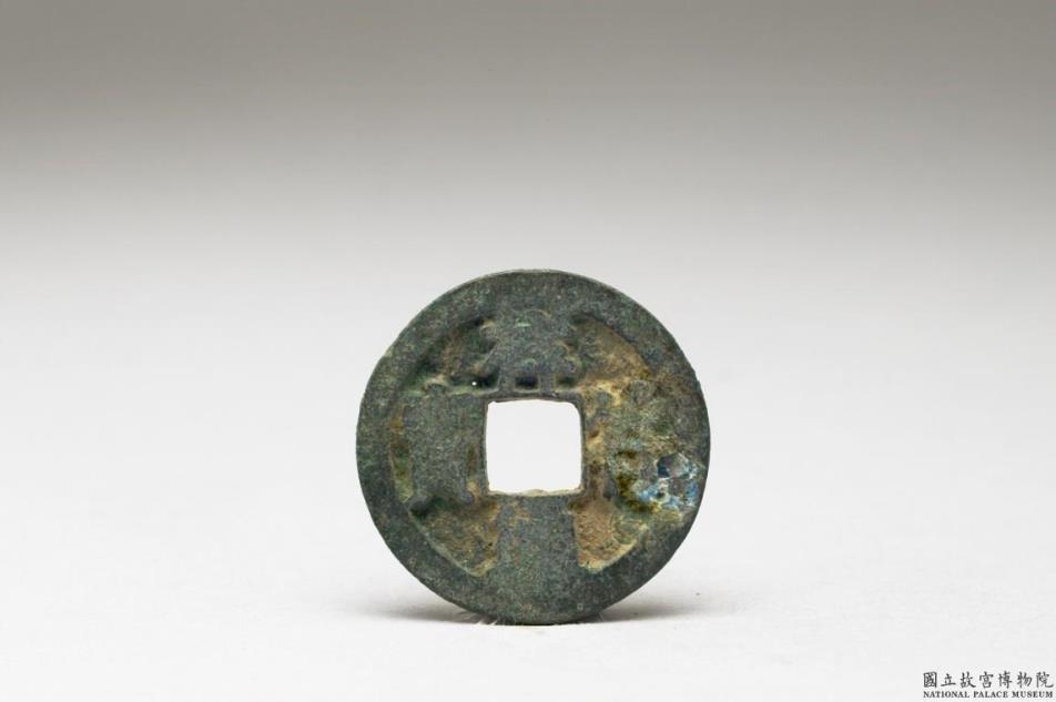 方孔圆钱,正面有楷书:「祥符元宝」四字,背面无文。