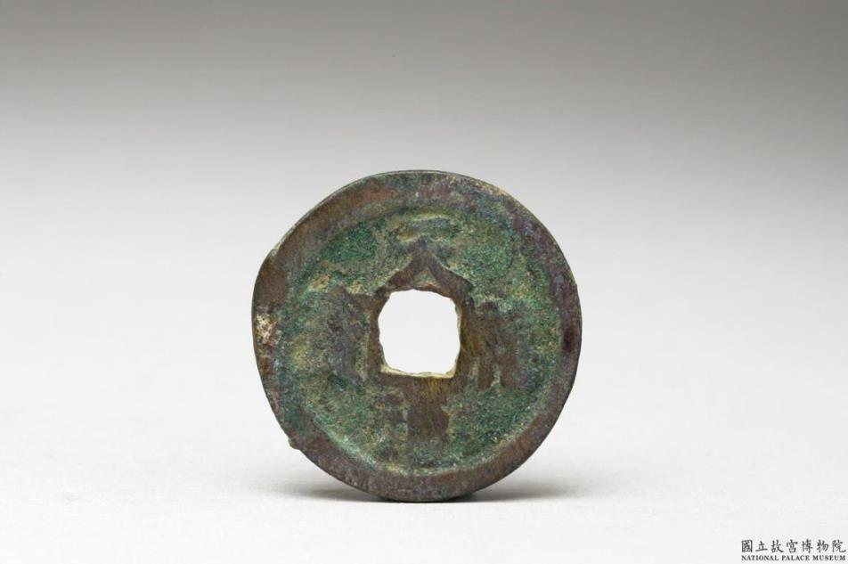 方孔圆钱,正面有楷书:「天禧通宝」四字,背面无文。