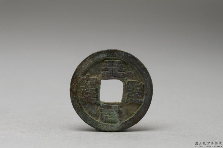 方孔圆钱,正面有楷书:「天圣元宝」四字,背面无文。