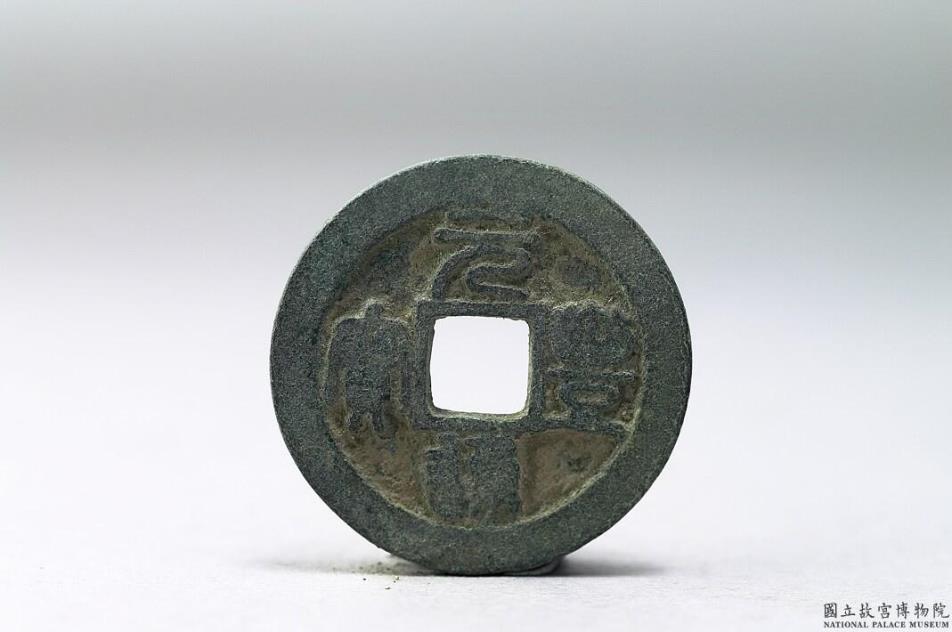 方孔圆钱,正面有楷书:「元丰通宝」四字,背面无文。