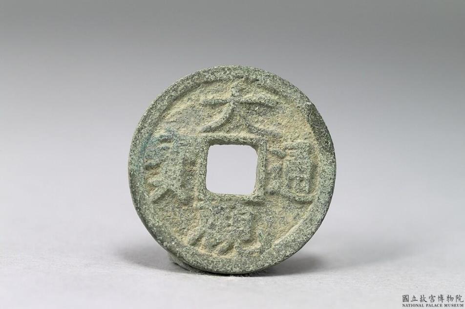 方孔圆钱。「大观通宝」有铜、铁两种材质。正面有楷书「大观通宝」四字,为徽宗御笔瘦金体,背面无文。
