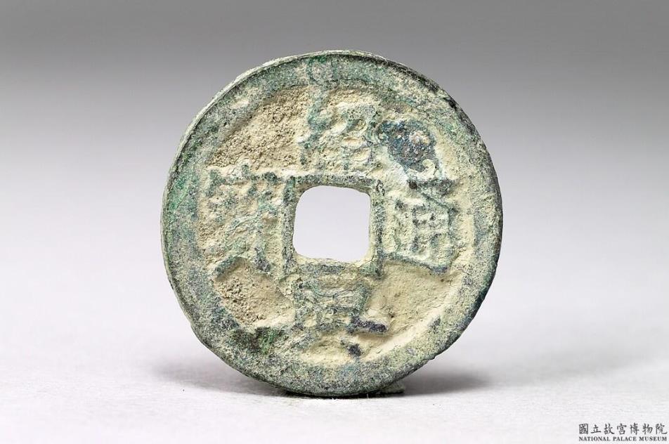 方孔圆钱,正面有楷书「绍兴通宝」四字,相传为高宗御笔,背面无文。