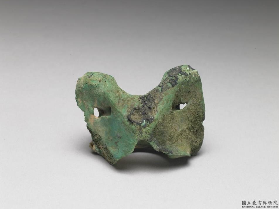 全器乃骨之原形,因无人类加工痕迹,无法确知其时代,但依全器已染成铜绿色,墓葬中可能埋有不少铜锡合金器。据了解,此物发现时置一汉鼎中,此鼎中同时尚有不少残骨,或为祭典中残留物。