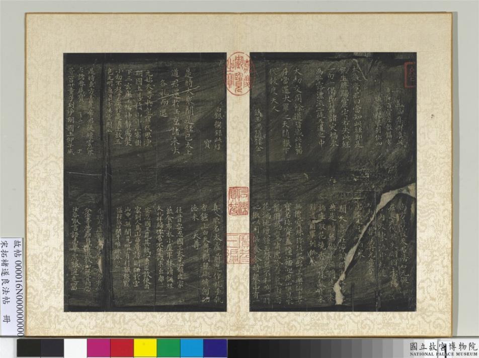 予家旧藏唐阎立本画。灵宝度人经变。褚遂良题字。惜其岁久湮灭。将失永传。独字画仅可模刻。以贻好事云。元佑戊辰(公元一0八八年)仲冬。韩城。范正思记。翰林祇应。孙德明刊。