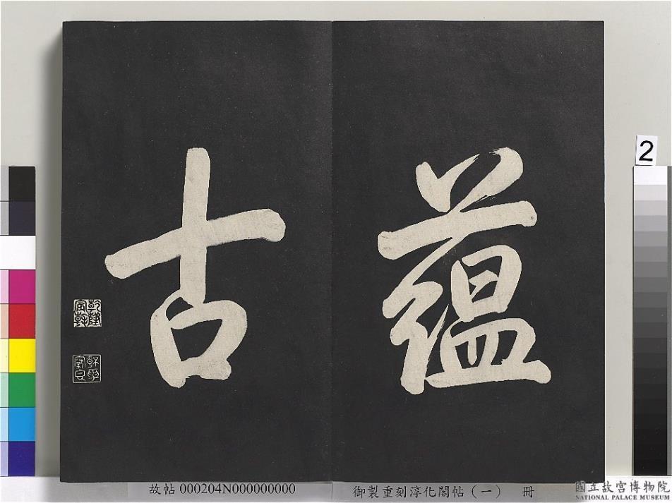 阁帖第一卷。首列帝王。于义当矣。而禹书十二字。散置卷五。所应表出。以冠简端。又隋朝法帖一则。既属制词。且考婺州沿革。宜标文帝。移入此卷。至如司马懿。虽其子孙追尊宣帝。而谊终魏臣。与晋陈三王。并当改就臣列。其余标题岐舛。悉为订正。又唐太宗帖内。多阑入高宗书。如江叔为太宗弟。元祥蔼为鲁王灵䕫子。乃高宗从弟。枇杷一帖。则蒋王恽镇蜀时事。东都废自武德。复于显庆。终贞观之世。为洛阳宫。正史具存。皆可据以移定。或以移营怀让二帖。亦高宗书。考永徽以后。未亲武事。不当有移营之勅。而豆卢怀让与房遗爱。皆文皇懿亲。岂得以开元僧名偶同。妄生疑义。其章草数行。乃梁周兴嗣千文中语。不应后汉先有此书。或亦如怀仁之集圣教序。但章草着自章和。以为章帝书。理尚可通。盖此帖重在摹刻流传。其书之真伪。固无庸深论耳。御识。