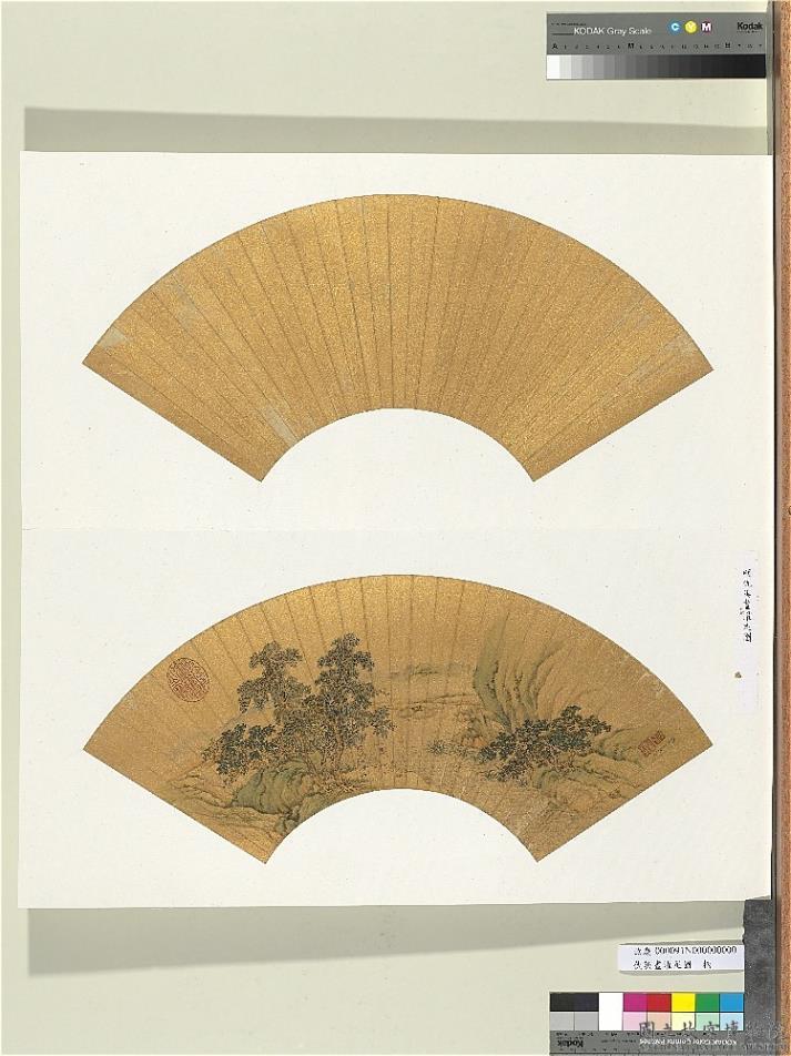 明刘原起画梧竹草亭文从简书七言律诗 成扇 刘原起画梧竹草亭