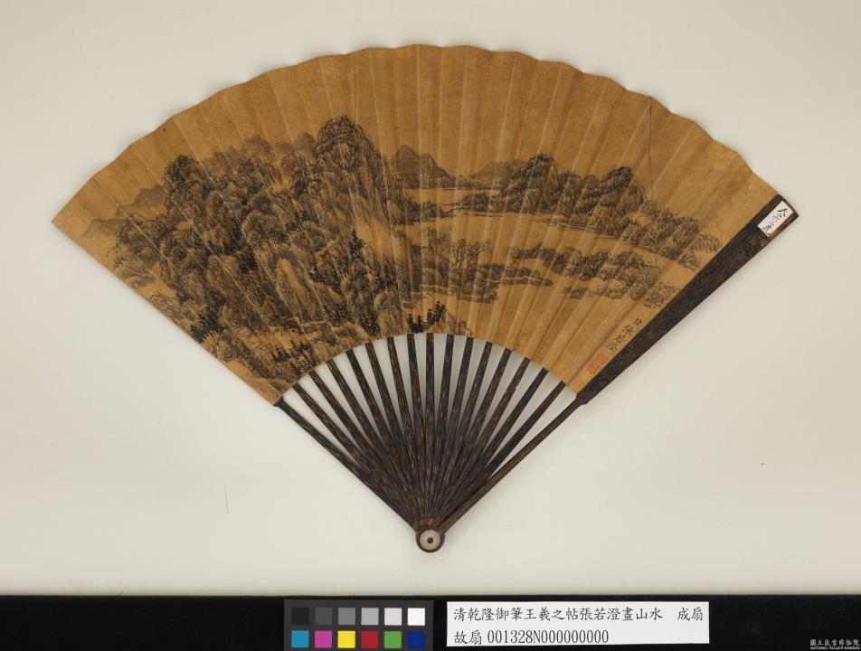 清乾隆御笔王羲之帖张若澄画山水 成扇