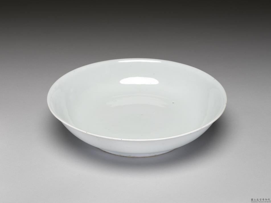 侈口窄唇,浅壁,矮圈足。胎质较厚,釉色甜白,朴素无纹饰。