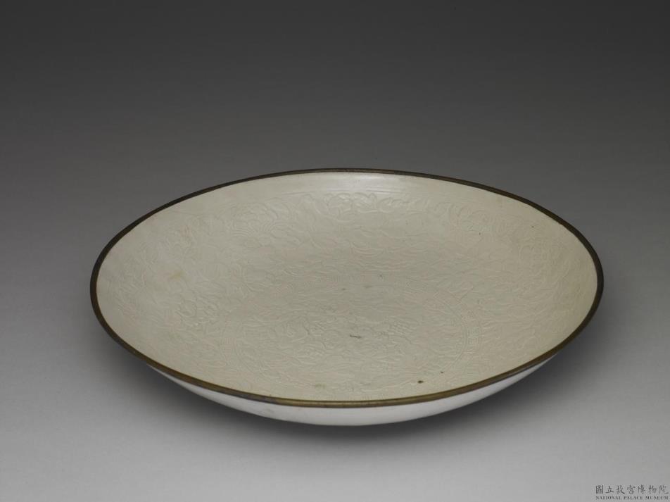 定窑 印花牡丹莲花大盘