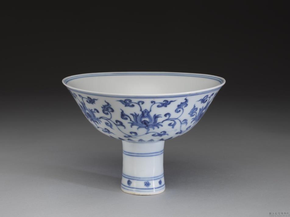 官窑 青花番莲高足碗