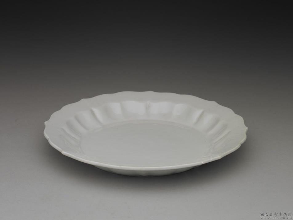 官窑 甜白划花花卉莲花式盘