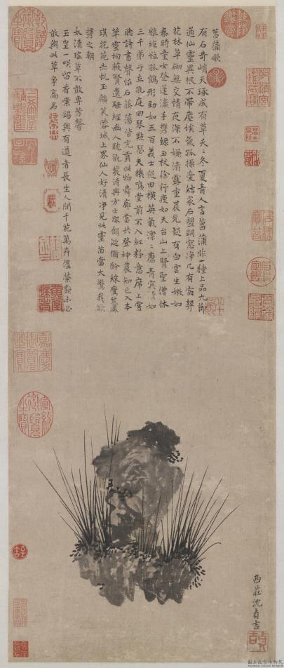 此幅画一石,上植菖蒲数茎,虽寥寥几笔,而皆劲挺稳重,营置亦严,非出于仓卒间者。
