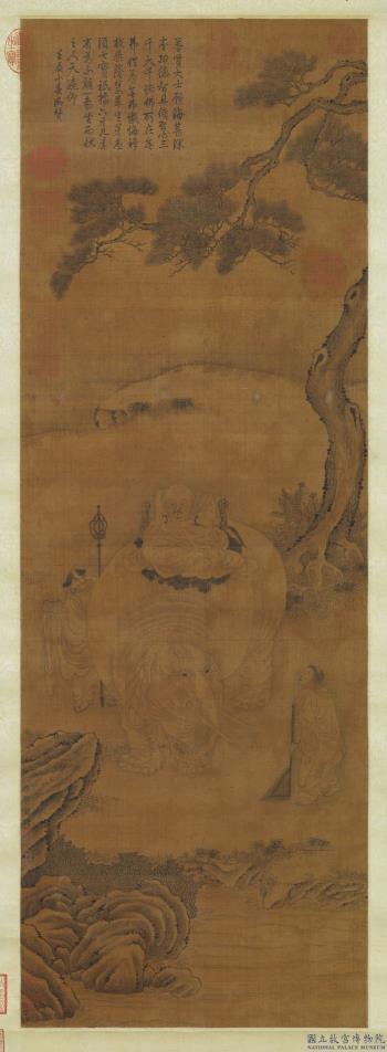 普贤大士。愿海甚深。本功徳智。具修习心。三千大千。诸佛所在。无弗供养。无弗懴悔。禅枝垂荫。慧草生芽。底须七寳。祗据六牙。凡属有为。不离一象。坐而伏之。人天遍仰。壬辰(公元一七七二年)小春御赞。