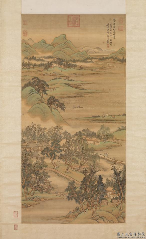 赵大年湖山春晓图。岁次乙未(公元一七一五年)暮春之初。橅于耕烟草堂。石谷王翚。