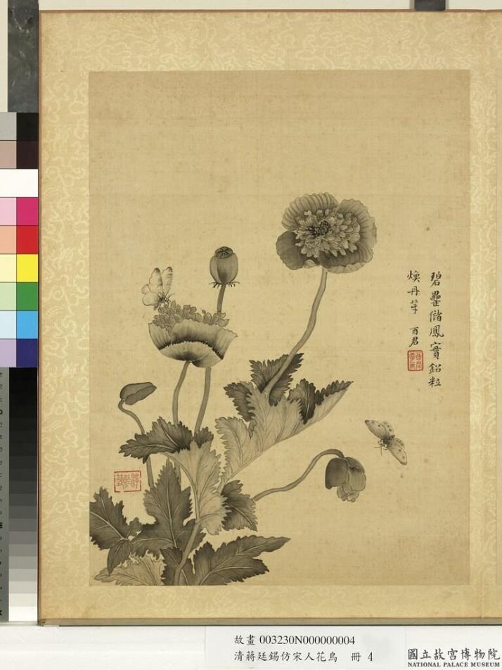 清蒋廷锡仿宋人花鸟 册 罂粟来蝶