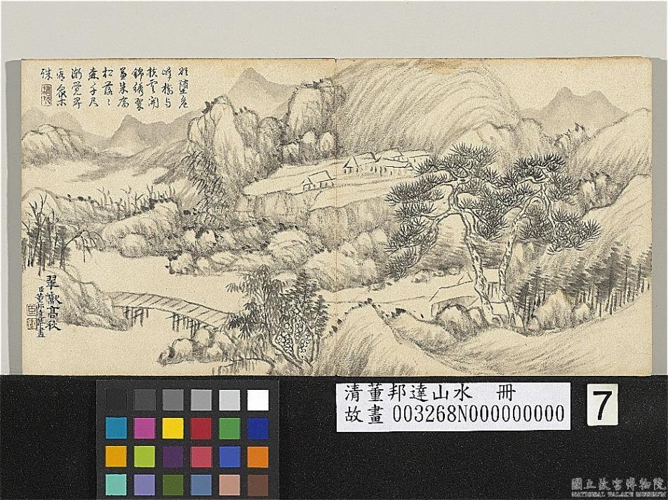 翠巘高秋(隶书)。臣董邦达恭画(楷书)。