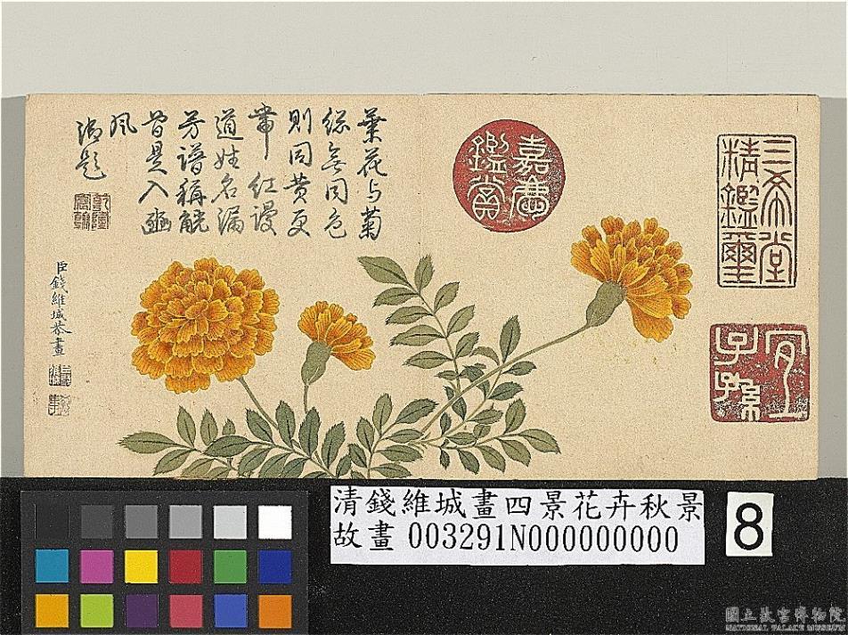 清钱维城画四景花卉秋景 册 万寿菊